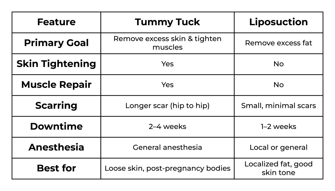 If you’re confused between a tummy tuck and liposuction, understanding your body’s needs is the first step. While liposuction is great for spot fat reduction, tummy tuck offers a complete solution for excess skin and muscle tightening.
